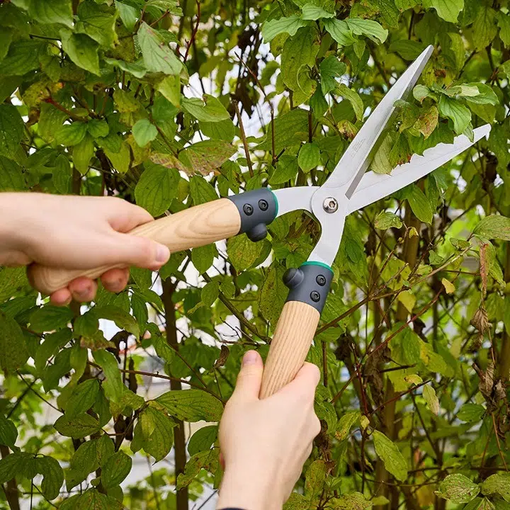 Ahşap saplı çit budama makası, bahçenizde sağlam ve güvenilir aletlerle bakım yapmak isteyenler için ideal bir alettir.