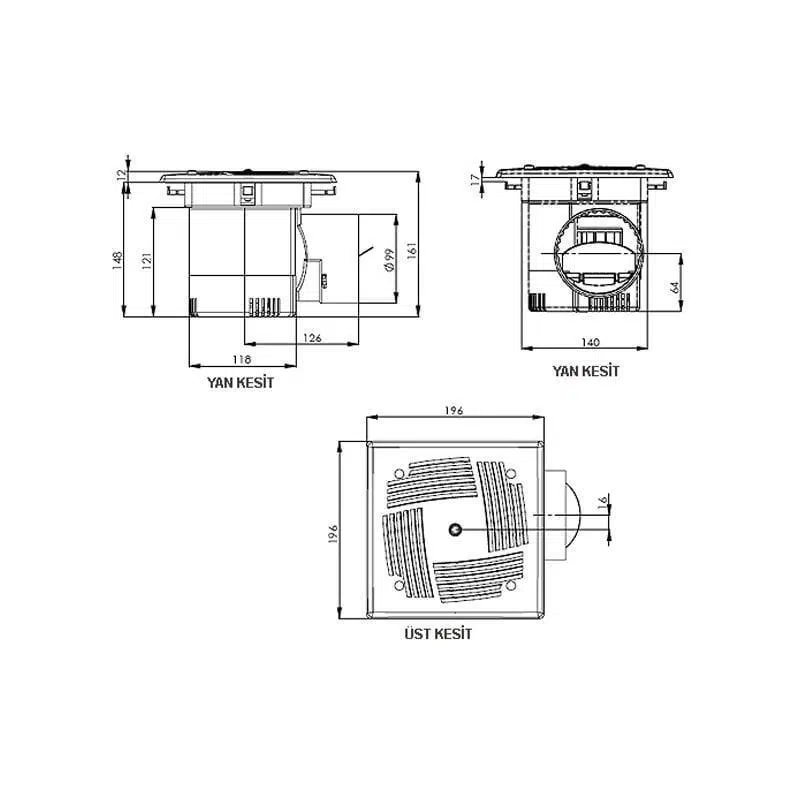 • Özellikle Aspiratöre takılacak bağlantı Borusuyla birlikte tavan tipi Havalandırma uygulamalarında kullanılmak üzere üretilmiştir.