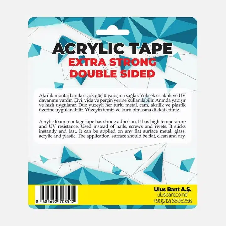 Güçlü yapışma özelliği, yüksek sıcaklık ve UV dayanımı vardır.