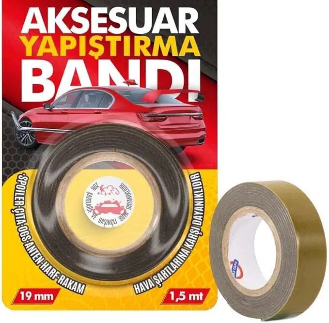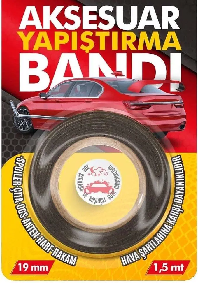 Oto Aksesuar Yapıştırma Bandı sayesinde aracınızın rüzgarlığını, çıtalarını, krom ve nikelaj parçalarını, antenini, harf ve rakamlarını, marka ve modelini, OGS cihazını güvenle yapıştırabilirsiniz. Dış hava şartlarına, neme, yağmura, basınçlı suya, deterjan türevlerine ve oto yıkama sırasındaki etkilere karşı dayanıklıdır.