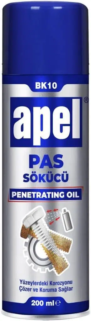 Apel BK-10 Pas sökücü aerosol pas sökücü, koruyucu, yağlayıcı olarak kullanılan bir aerosoldür. Pratik kullanımı ile doğrudan paslı yüzeyin üzerine püskürtülerek kullanılır. Uygulanacak yüzeylere hızlı bir şekilde nüfuz eder. Pas sökücü spreyi evde ve iş yerinde rahatlıkla kullanabilirsiniz. Pas sökücü yağlayıcı olarak da güvenle kullanabilirsiniz.