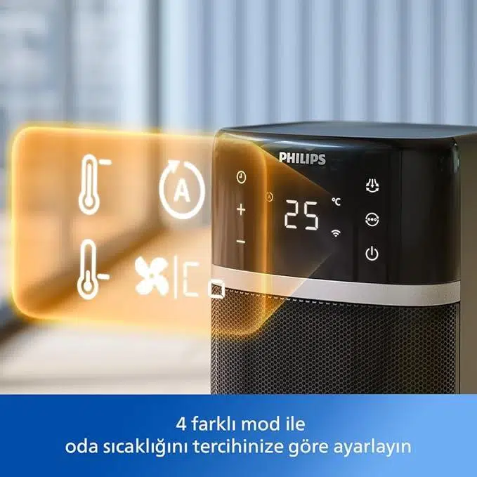Enerji verimliliği için yapay zeka (AI) ile güçlendirilmiştir: Sıradan fanlı ısıtıcılara kıyasla P'ye varan enerji tasarrufu. Bu ısıtıcı oda sıcaklığınıza uyum sağlar ve enerji tüketimini optimize etmek için kullanım modellerinizi analiz eder.