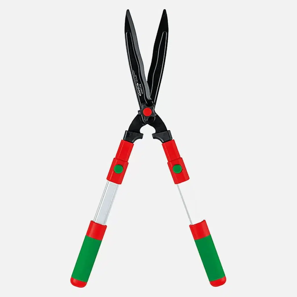 Birinci sınıf teleskopik çit düzelticisi, yüksek kaliteli alüminyum teleskopik sapı sayesinde uzun bir erişim alanına sahiptir ve kesme işini son derece hassas ve kolay bir şekilde gerçekleştirir. Sağlam çit düzeltici, şimşir ve diğer budama ağaçlarının budama şeklinde kesilmesi için idealdir ve kırpıntıların dışarı kaymasını önlemek için oluklu kesme bıçaklarıyla donatılmıştır. Ağırlığı optimize edilmiş çit budama makinesi aynı zamanda sertleştirilmiş çelikten yapılmış yapışmaz kaplamalı üst ve alt bıçağa, ayarlanabilir bıçak açıklığına ve güvenli çalışma için konforlu 2 bileşenli bir tutamağa sahiptir. Pratik teleskopik çit düzeltici aynı zamanda kendi kendini keskinleştirir. Entegre dal kesicinin kesme kapasitesi 8 mm'dir.