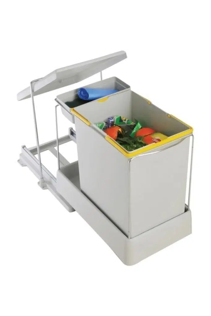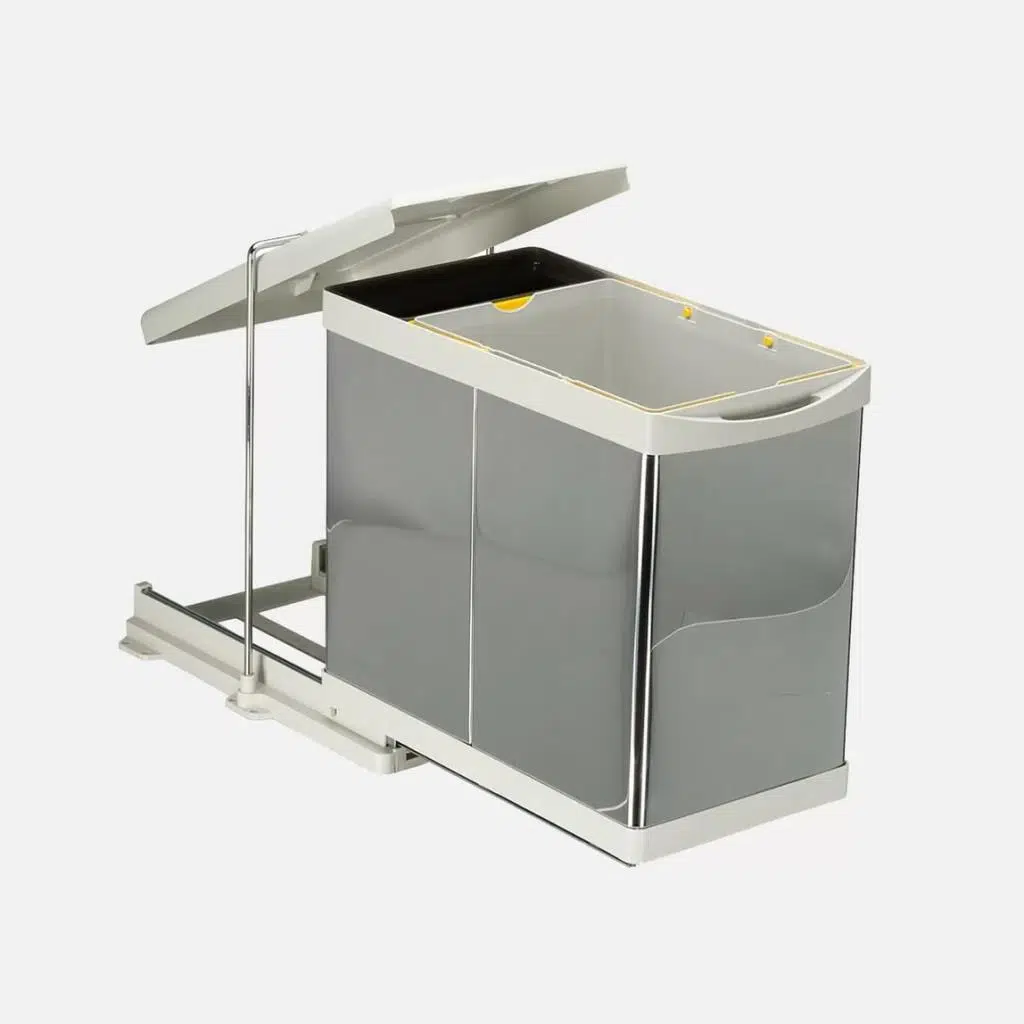 Raylı Paslanmaz Çöp Kutusu Gri 20+1 Lt