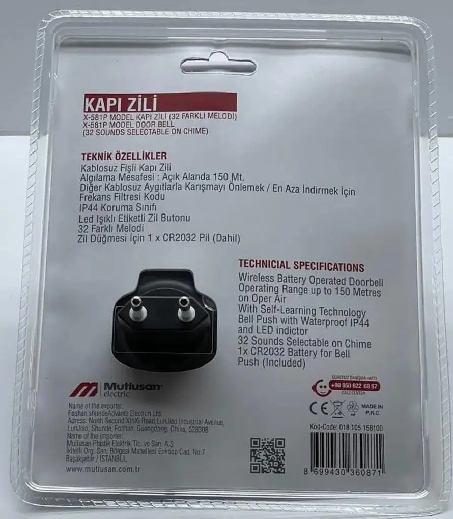Uzaktan Kumandalı Kapı Zili 32 Melodi